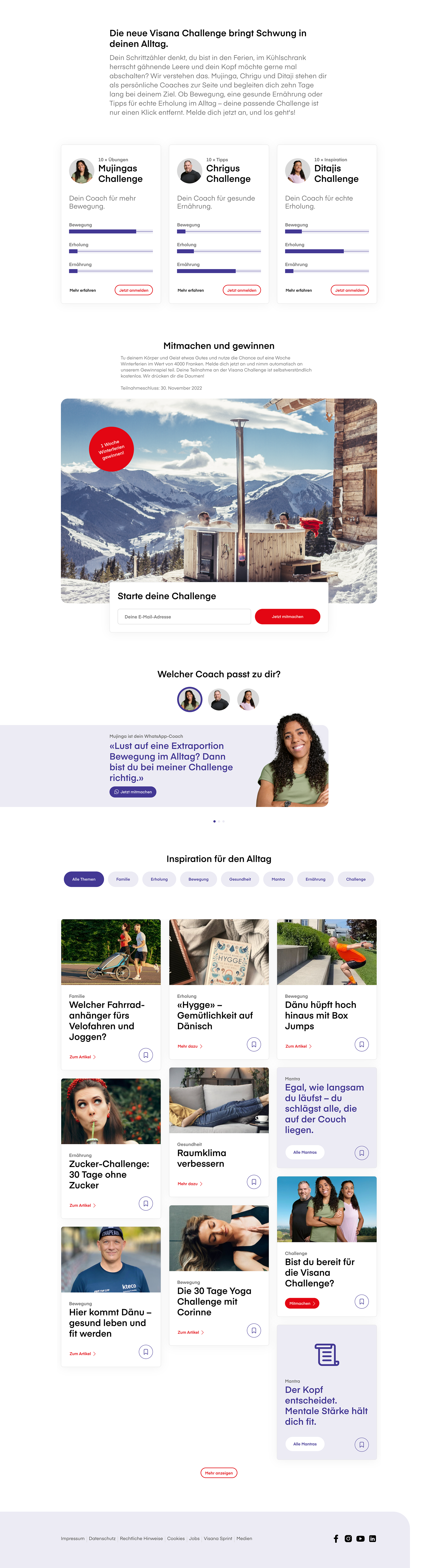 Together for a healthier Switzerland: Visana advocates for an active, healthy lifestyle. Nerves provides the concept, design, and programming of the new digital platform. For the autumn launch campaign, the ambassadors Mujinga, Chrigu, and Ditaji motivate people to participate in the Visana Challenge through a widespread campaign on TV, out-of-home, and digital channels, while also introducing them to the new health platform. An attractive offer is presented that motivates, inspires and can easily be integrated into the daily lives of families in Switzerland.