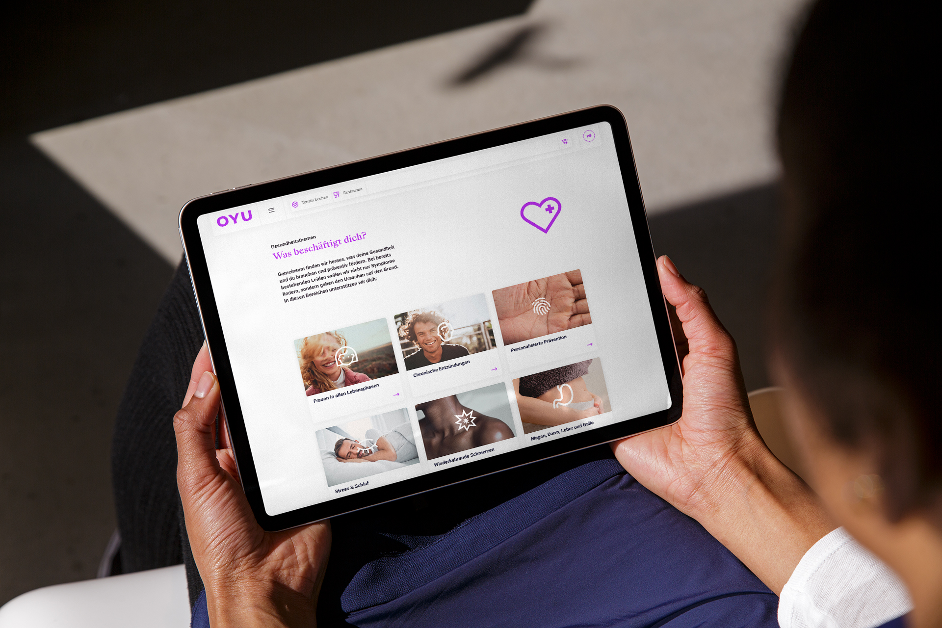 Revolutionising complementary medicine? Nerves develops market presence for the urban health and lifestyle centre in the heart of Zurich. Naming, branding and website design for OYU. How a strategy paper on PowerPoint is transformed into a 1000sqm health centre in the heart of Zurich.