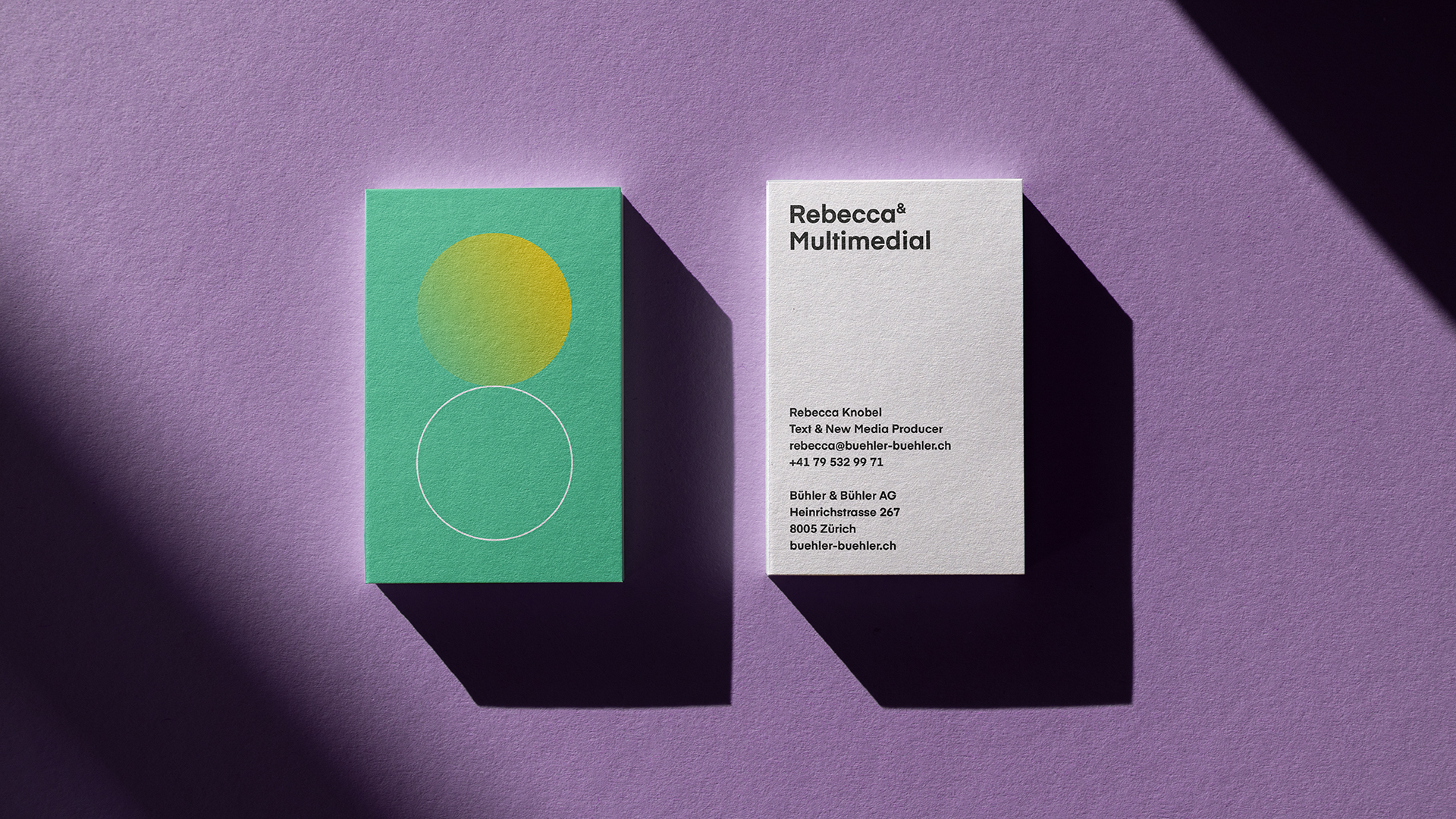 Creating a rebranding for a friendly agency was a wonderful task. At Bühler & Bühler, there is a great atmosphere in the team and they live a partnership approach with their clients. We focused on these essential values. The focus is on the employees and the customers. Each and every one of them is a part of the new branding: "Bühler & Rebecca" just as much as "Bühler & Swisscom. Because only together have Bühler & Bühler become what they are today in ten years.