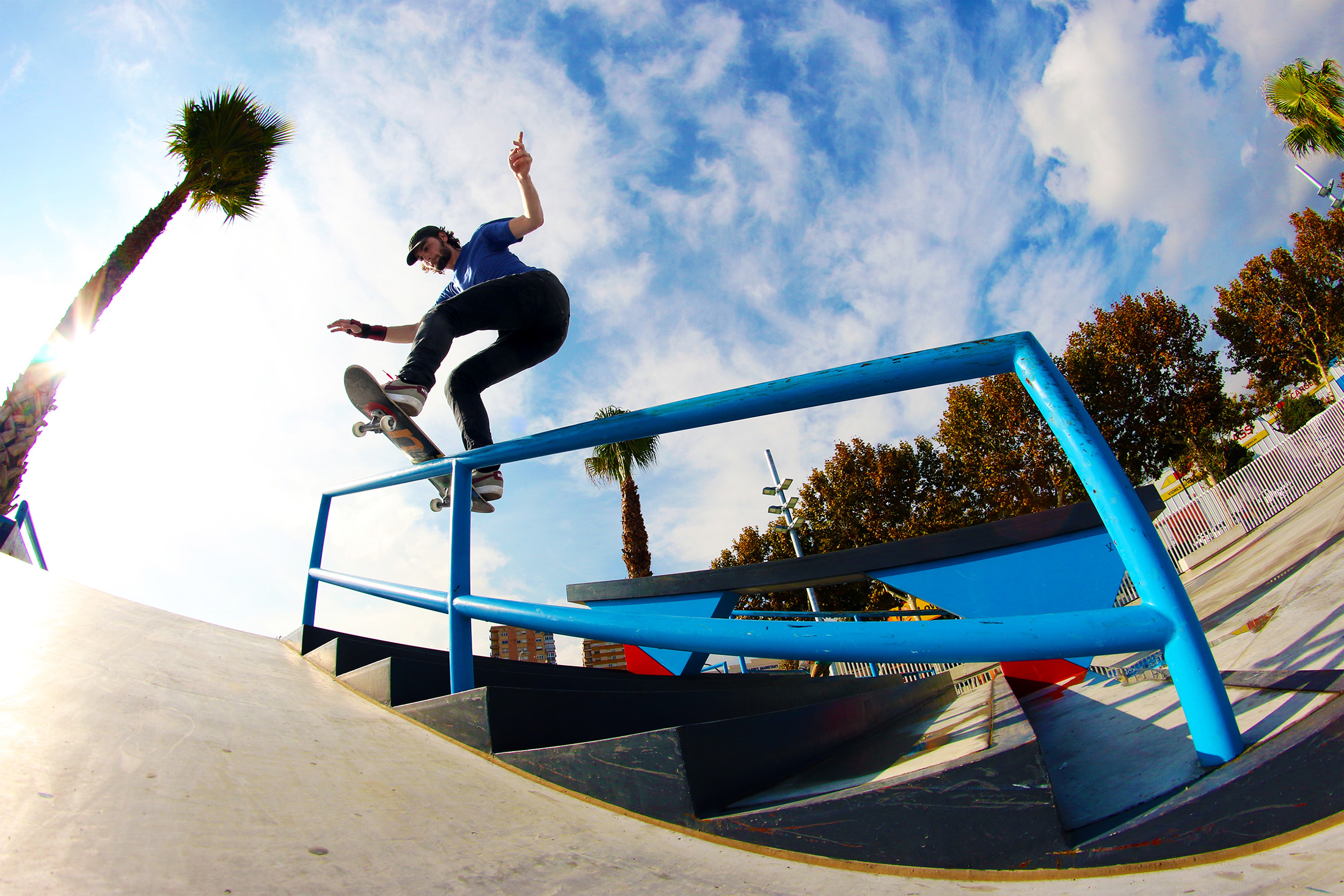 Our resident nerd Dan performs a frontside boardslide in Barcelona.