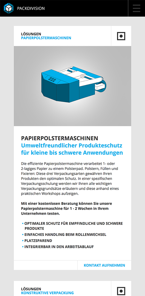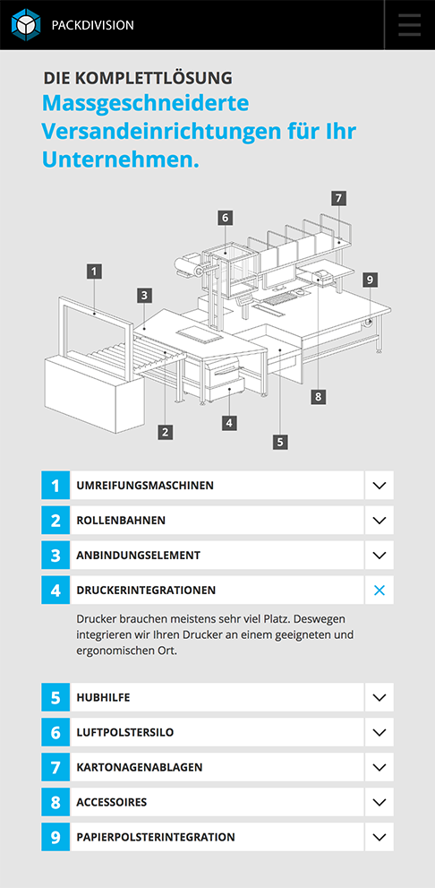 Not all websites have to be complicated. For the automated-packaging company Packdivision we created a simple (yet very effective) website, along with a clean branding and a set of illustrations.