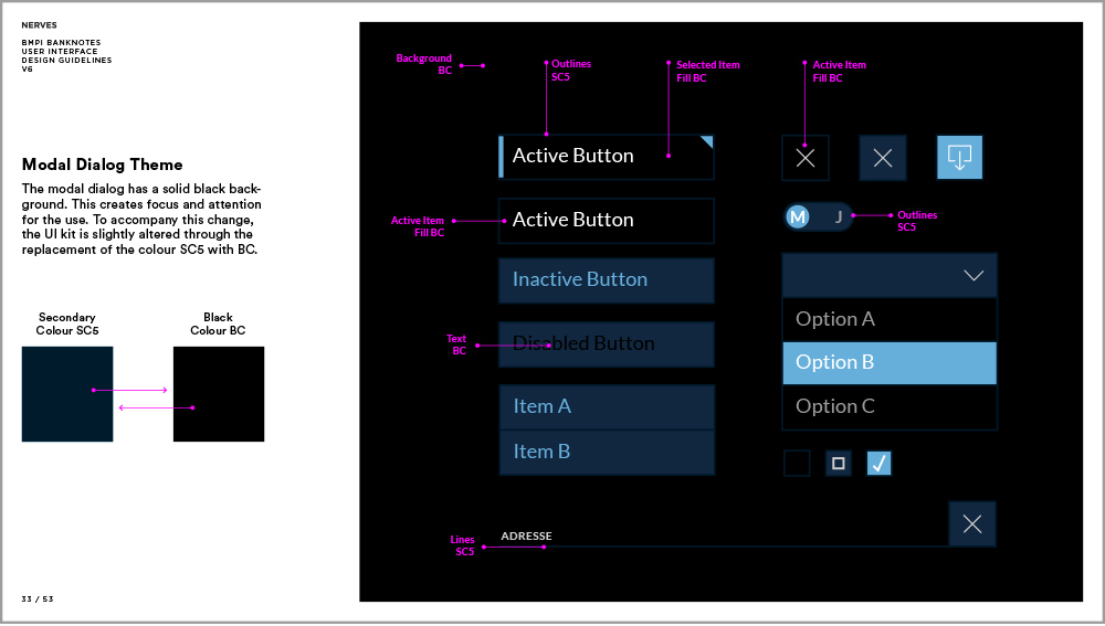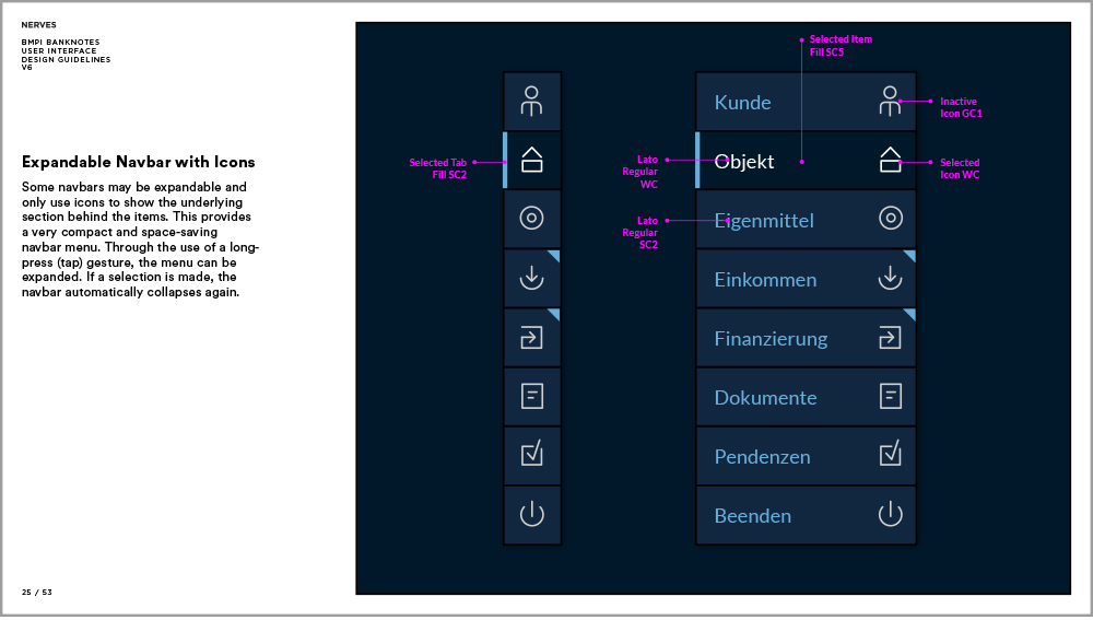 The intelligent notepad, developed by bmpi, is changing the way advisory meetings are being conducted between bankers and their clients. Innovative handwriting recognition and interactive data visualisation enhance the personal experience, drive efficiency and have proven to increase the overall quality of the customer journey on multiple touchpoints. The UI-Design & Manual for bankNotes has been developed by Nerves.
