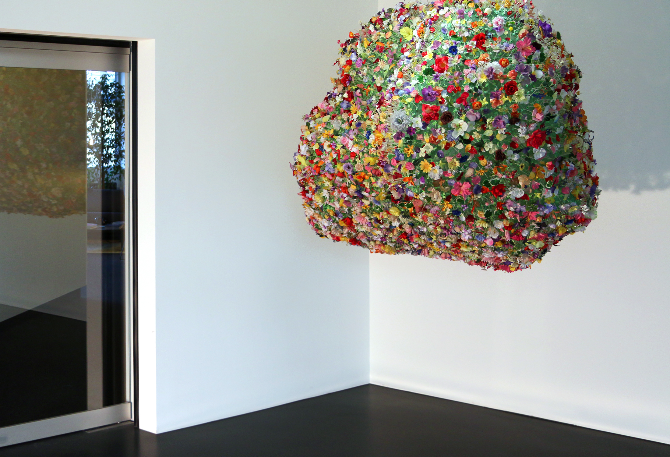 In front of our agency a cloud of plastic, wire mesh and countless cable ties has risen. What sounds pretty awful, is actually very majestic. The Swiss artist and pianist, Barb Wagner, is the creator of the radiant flower-cloud. We thank her for the great art loan!