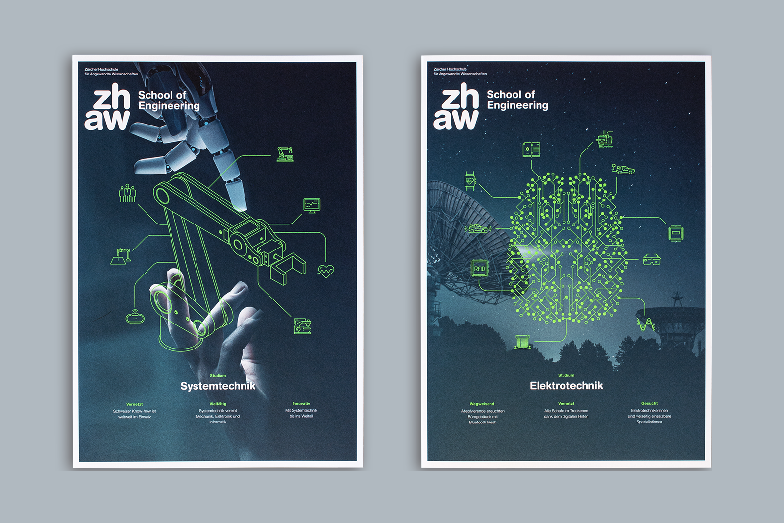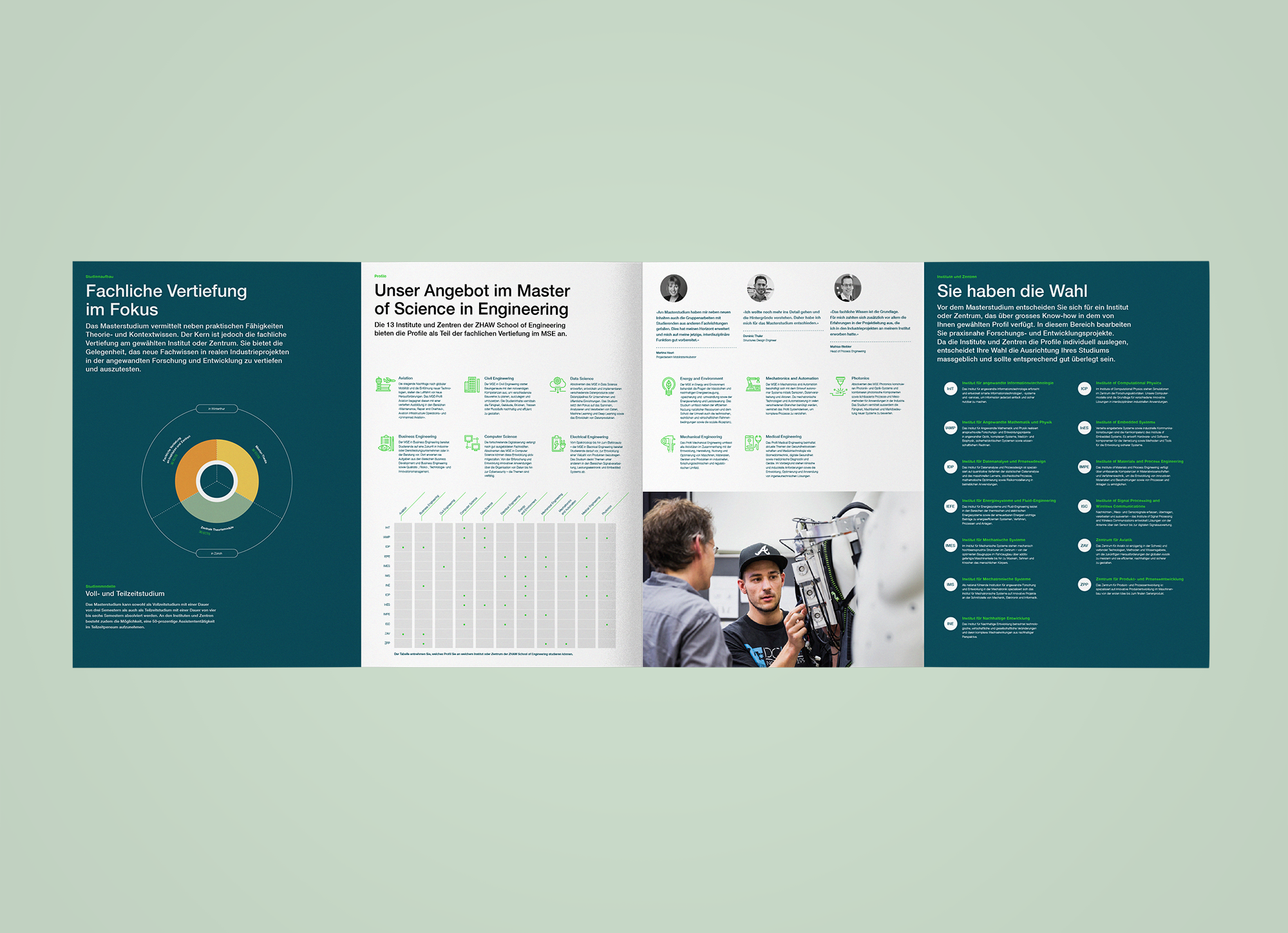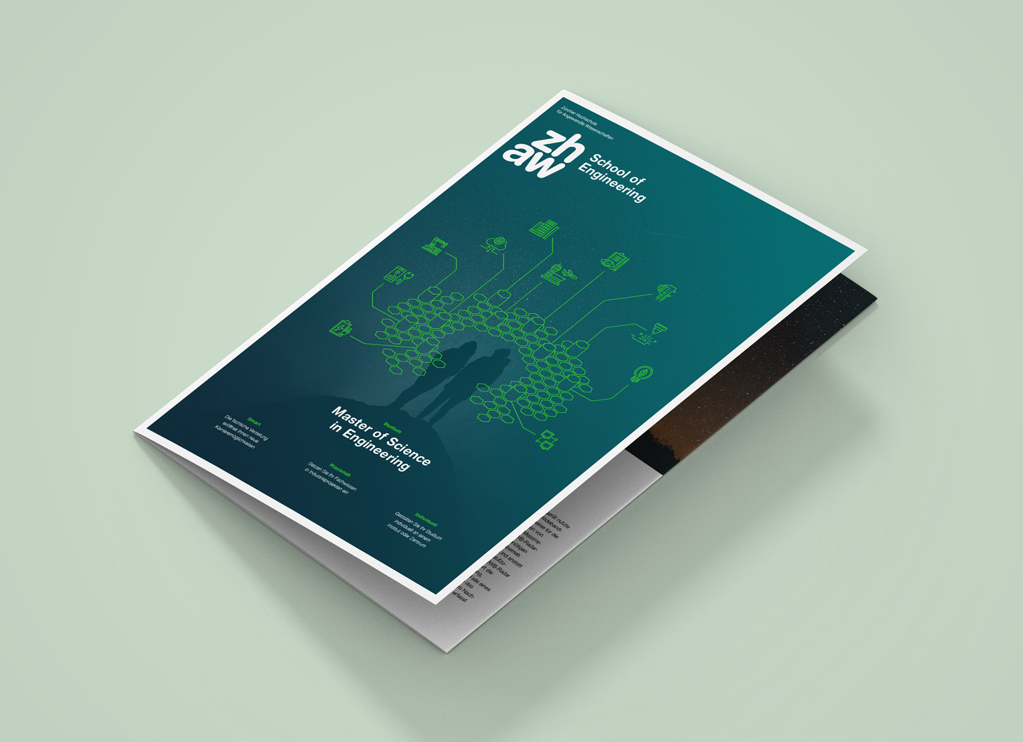 Concept, design and realisation of the new Undergraduate Degree brochures. Founded back in 1874 as the Technikum Winterthur, the School of Engineering is an institute of education with a rich tradition. As one of the leading engineering faculties in Switzerland, the university focuses on topics which will continue to be relevant long into the future.