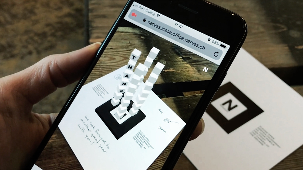 We sent out a augmented reality card with our own answer to the question. Try it out yourself: open nerves.ch/monday on your mobile, then point the camera to this digital version of the card.