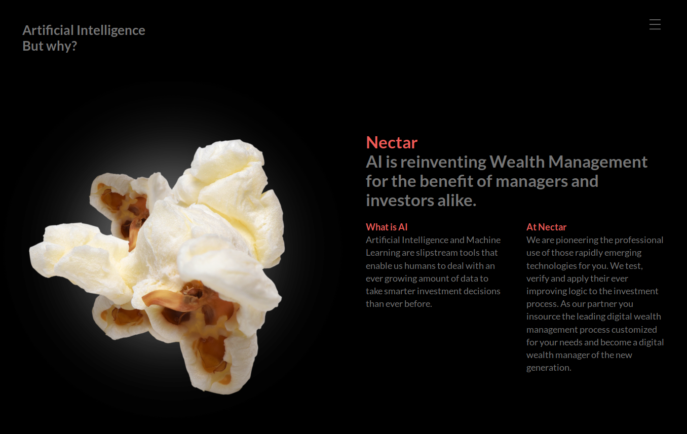 To wonder how, is to begin to understand why Nectar embodies the future of Wealth Management. AI and machine learning play an integral role in the process of democratizing the investment processes and to shift the financial returns to the people. Nerves helps shape the ambitious Nectar brand from a strategic, as well as operational, point of view across digital and offline channels.
