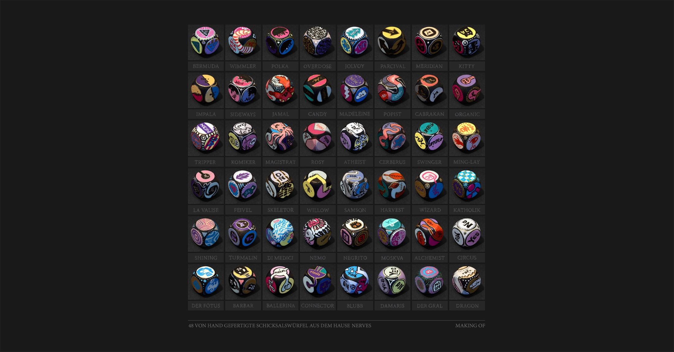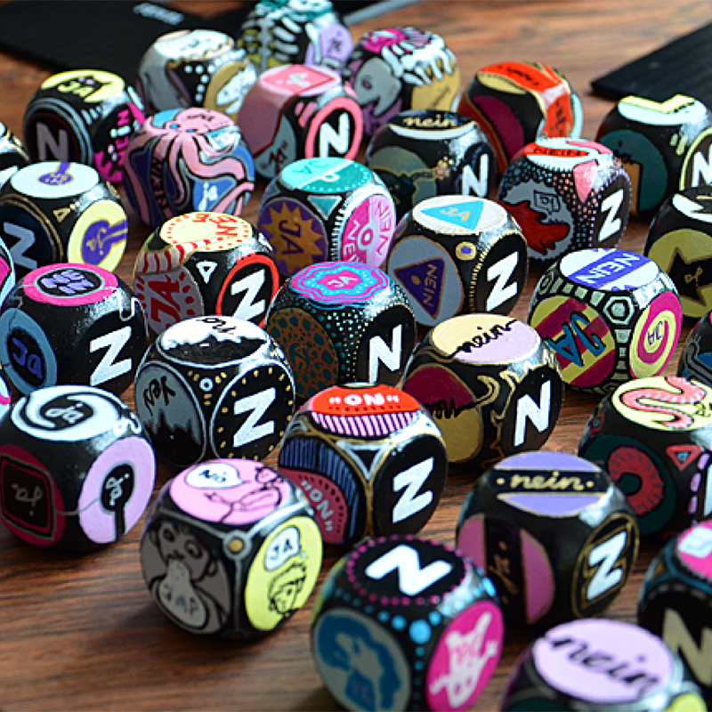 With the personal Nerves Dice of Fortune one can master the year with ease. When in tricky situations, simply ask the dice a yes-or-no question that should nail the decision for you and you're already rolling away from any misfortune. All according to the motto: everything has two sides; a good one, and one that isn't so bad at all. From dice to box - Nerves individually crafted these fortune tellers with a lot of love.