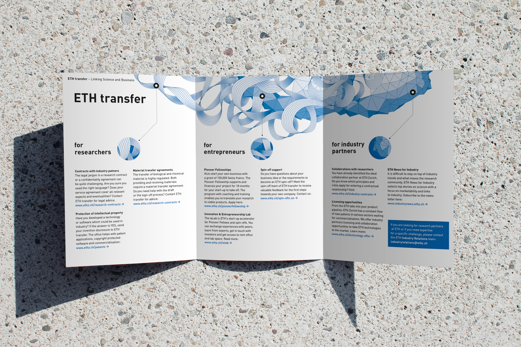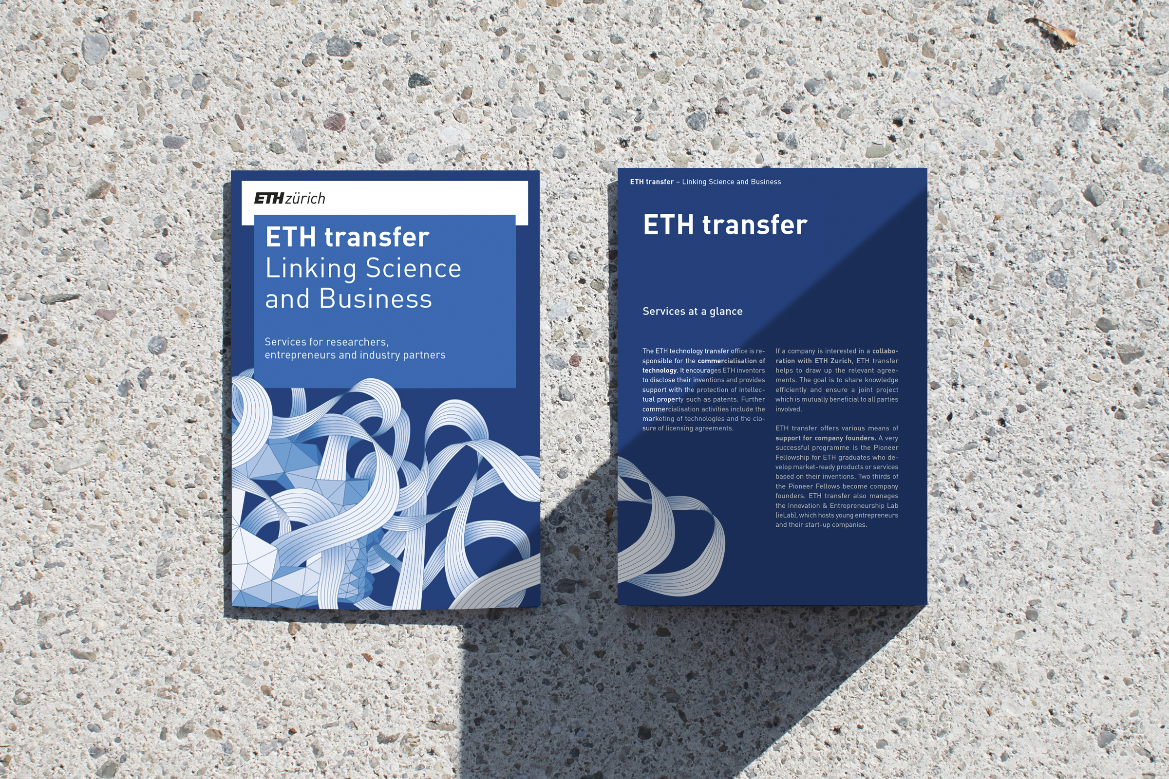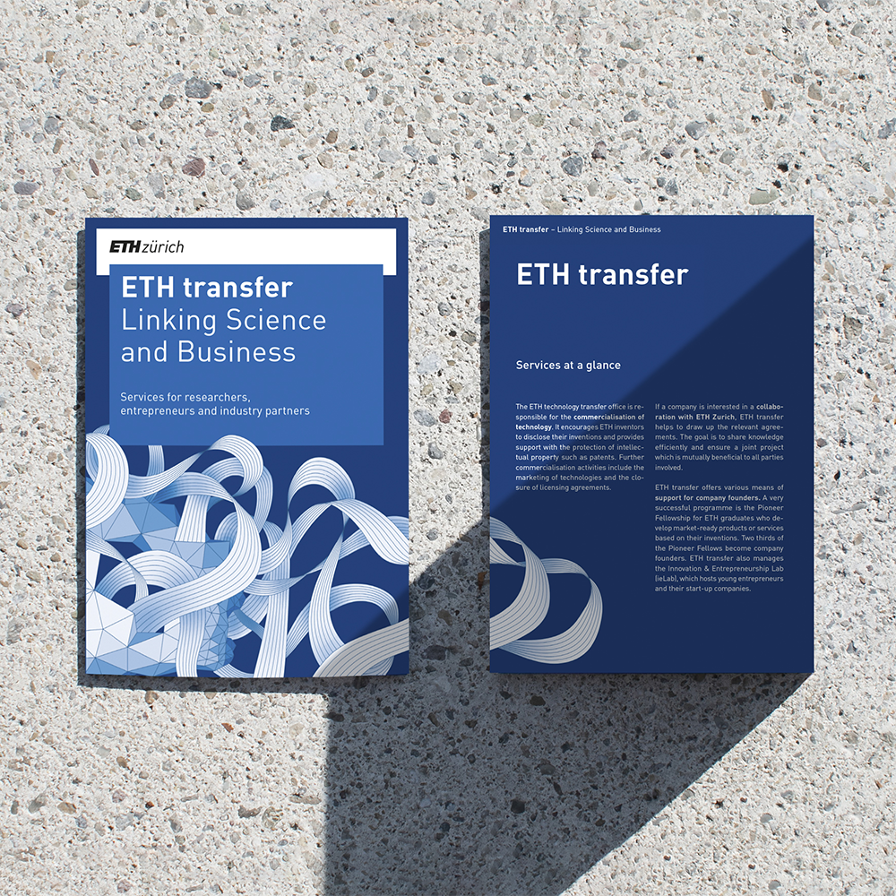 Design concept, key visual and brochure for ETH transfer, the technology transfer office of ETH Zürich.
